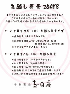毎年、年越し蕎麦のテイクアウトをご注文いただいていた皆さまには、